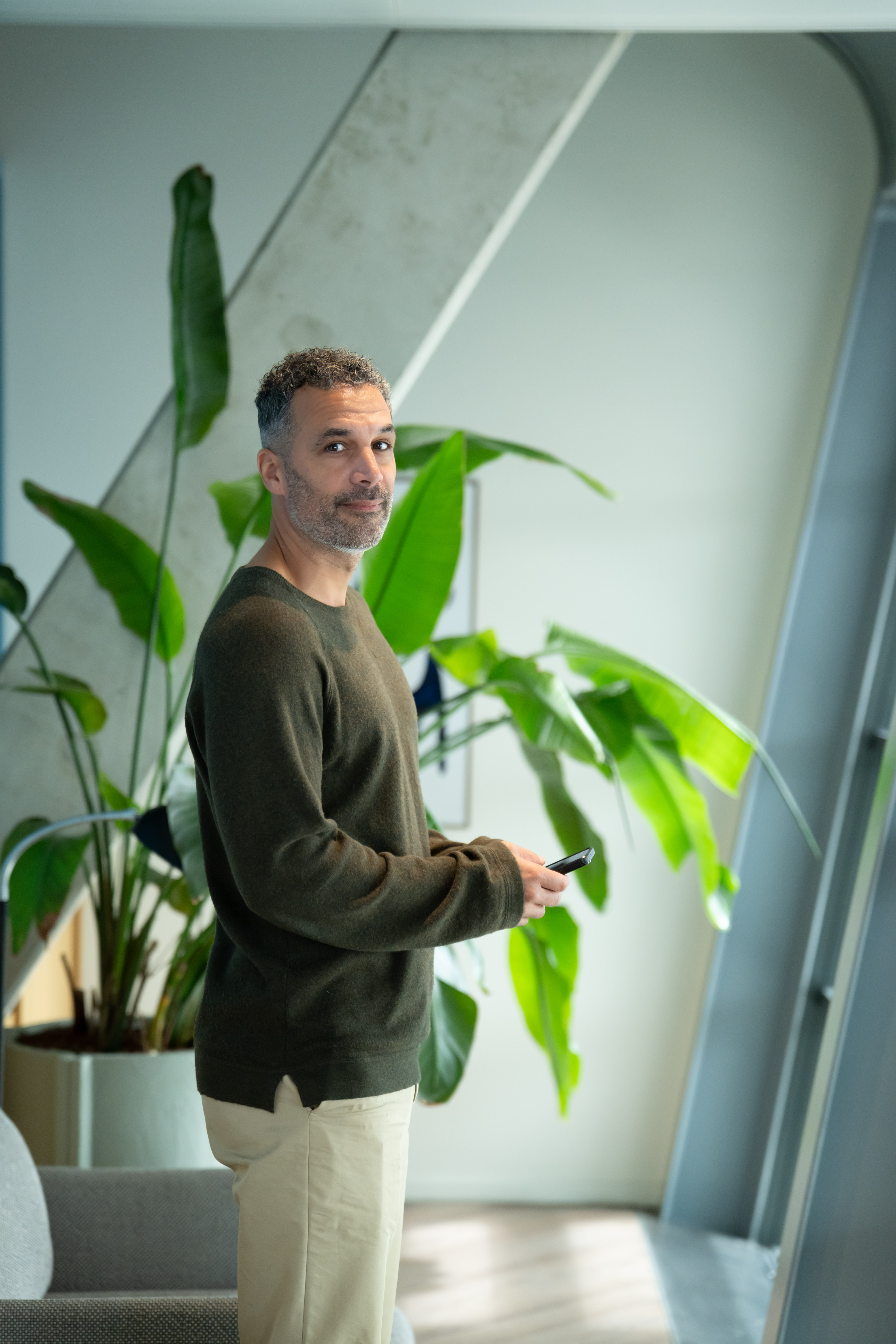 The location is perfect: people from Utrecht, The Hague and Rotterdam get there easily, international clients walk in straight from the terminal, and he himself is at his office in eight minutes. His office expanded from one room to two. The wall in between came down. It all felt natural.